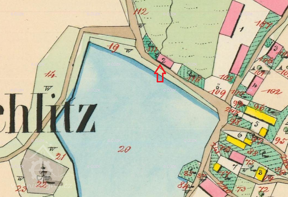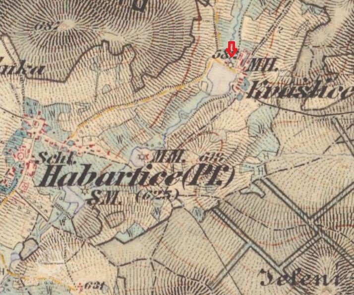 Popis1850: 1 lopatkové kolo na svtchní vodu, prům 3,8 m, šířka 0,38 m, obvod 11,4 m
