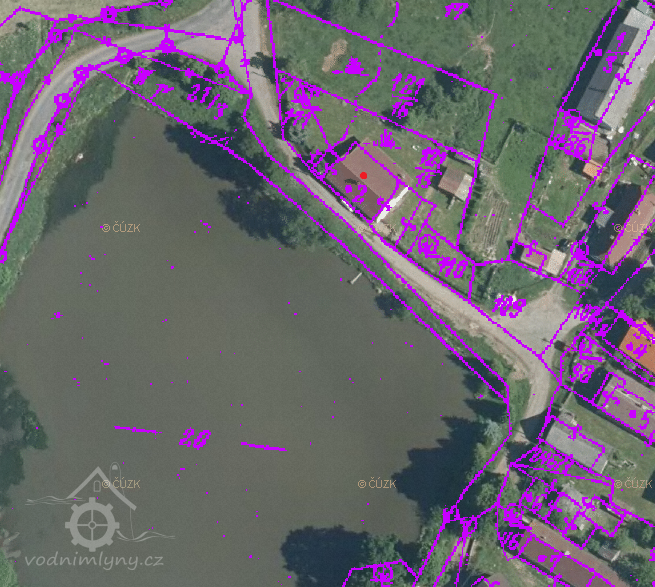 v roce 1930 bylo uvedeno 1 kolo na vrchní vodu, hltnost 0,08 m3/s, spád 3,6 (1937: 3,25) m, výkon vodního díla 2,5 (1937: 2,3) k.s., průměr 3,06 m, šířka 63,5 cm, hloubka lopatek 27 cm.
