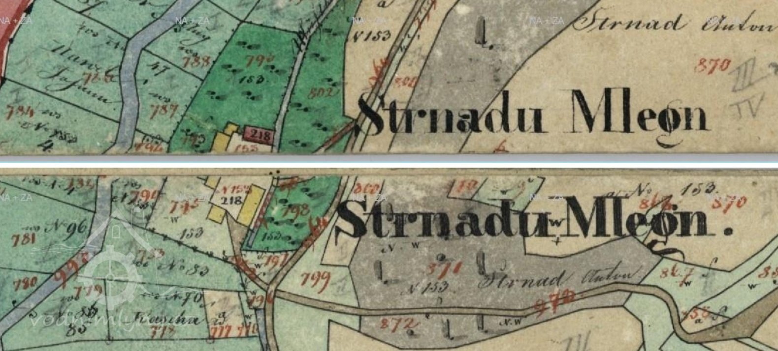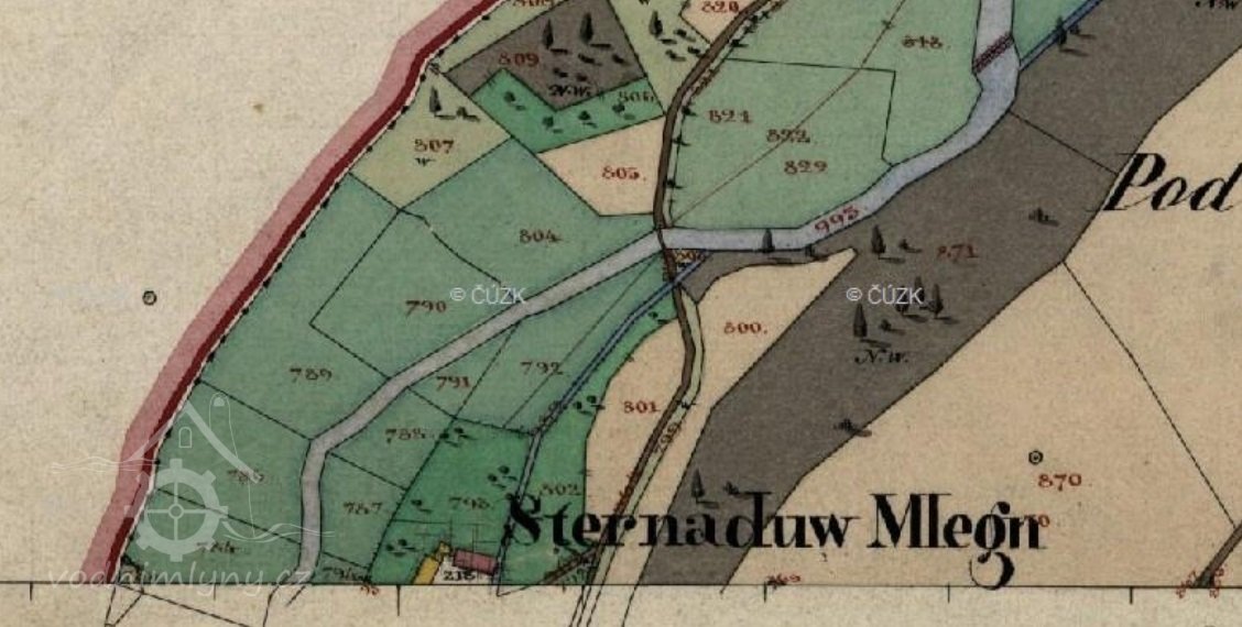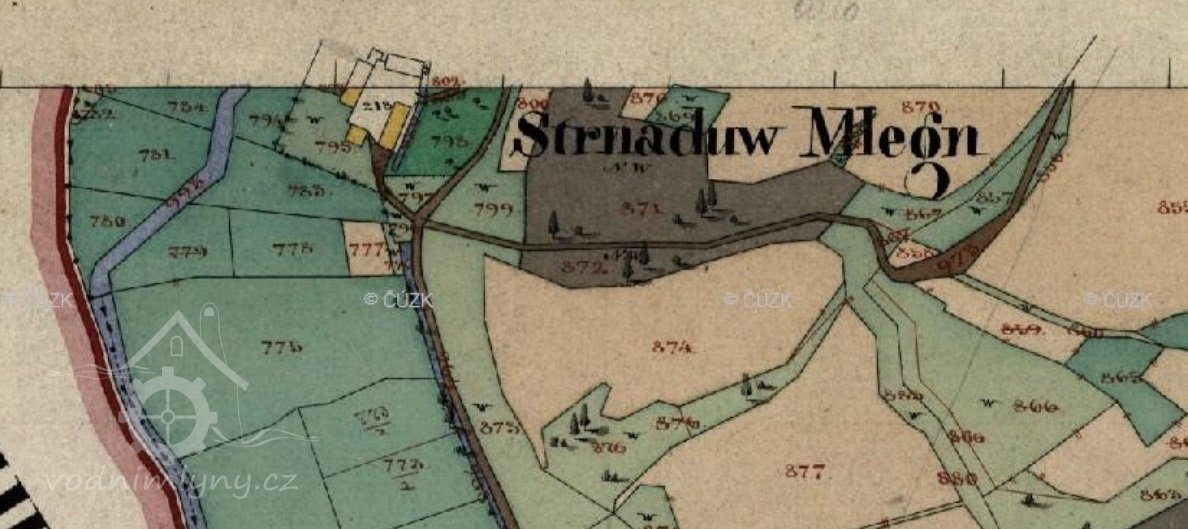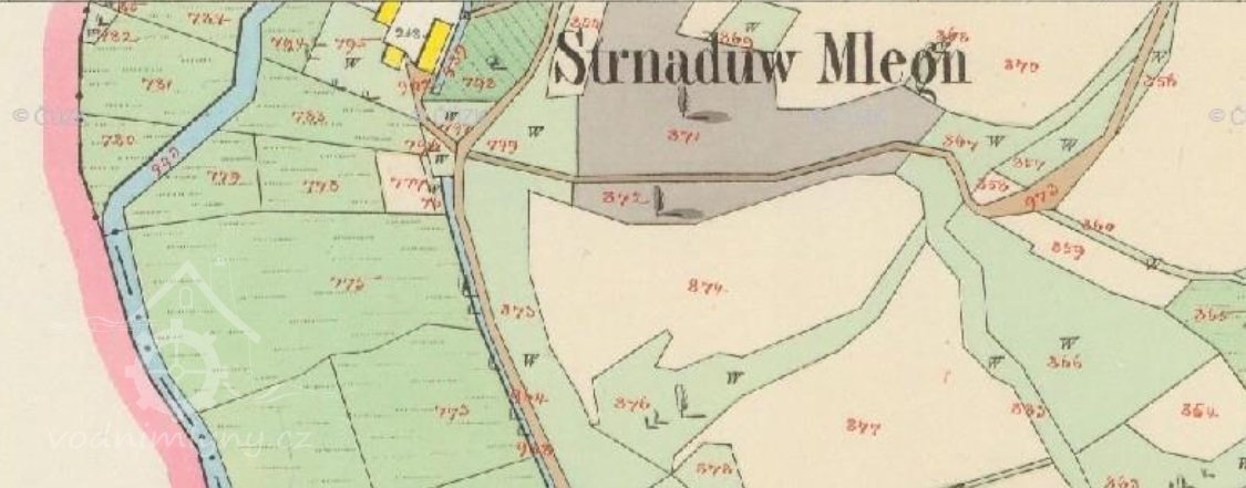 V zápise z let 1666 – 1671 se píše: Šimon Strnad (umřel), nyní Matěj Strnad (č.153), mlýn měl 1 potah, 10 str. polí, r. 1665 „pohořelý“, ale nyní má 2 potahy a 2 krávy, ale mlýn shořel, nyní jenom tam tříslo tlukou.
