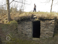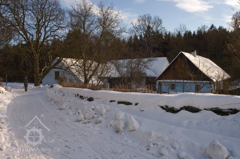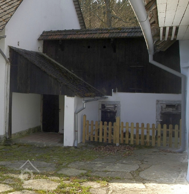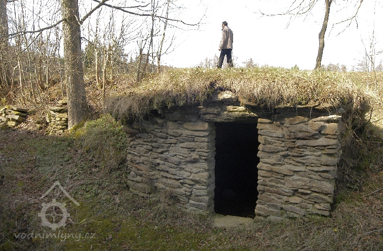 Situován na západní straně areálu pod hrází proti západnímu průčelí obytného stavení. Zahloubený do tělesa hráze, vyzděný z kamene, neomítaný, krytý drnem. Interiér plochostropý z masivních placáků, přístupný prostým obdélným vstupem.