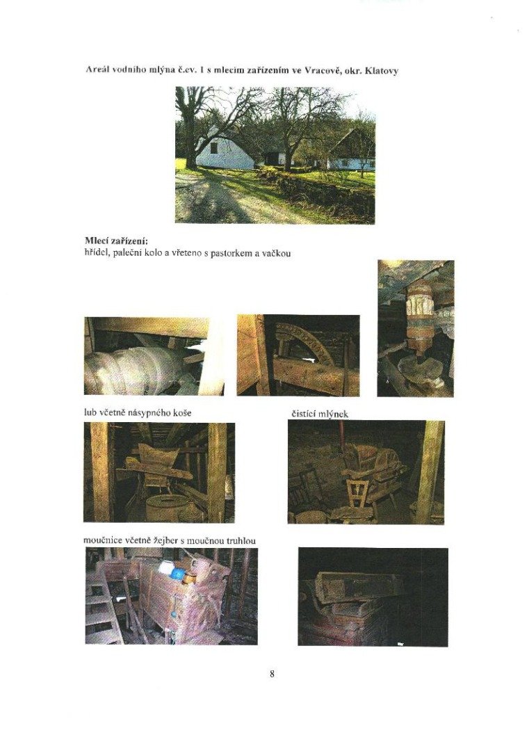 1) obytné stavení s mlýnicí včetně mlecího zařízení (hranice s jedním mlýnským složením — hřídel s palečným kolem, vřeteno s pastorkem a vačkou, lub včetně násypného koše, moučnice včetně žejber s moučnou truhlou, čisticí mlýnek)