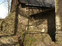 Na východní straně trojice obdélných zamřížovaných okenních otvorů naležato opatřených žulovým ostěním s mřížemi. Dvorní průčelí bez okenních otvorů, zhruba uprostřed umístěn obdélný vstup v kamenném ostění s nadsvětlíkem, patřený dvoukřídlými svlakovými dveřmi.