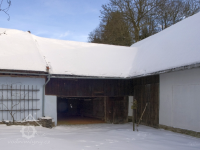 Na východní straně dvora naproti mlýnu stojí zděné omítané chlévy na obdélném půdorysu, kryté sedlovou střechou s pálenou krytinou (tašky esovky). Střecha je nad severní částí dvorního průčelí přetažena nad přístavek, otevřený z jižní strany. Severní průčelí vrcholí širokým asymetrickým trojúhelným štítem, v jeho ploše podávači otvor do půdního prostoru.