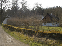 Nízká kamenná zídka z nasucho kladených kamenů vymezuje prostor bývalého sadu před severním průčelím obytného stavení, na ni navazuje přímý úsek ohradní zdi na severní straně dvora — k severozápadnímu nároží chlévů; v ohrazení prolomena nízká dřevěná dvoukřídlá branka z planěk. Na ohradní zdi nánosy mechů.