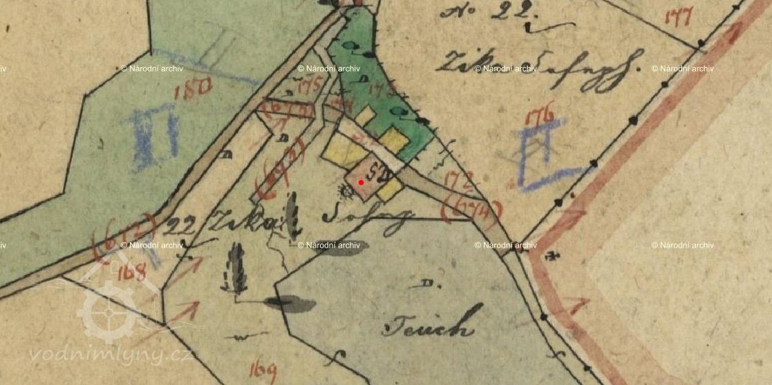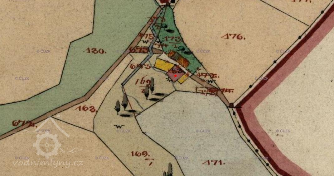 Mlýn zmiňovaný v tereziánském katastru cca k roku 1757.