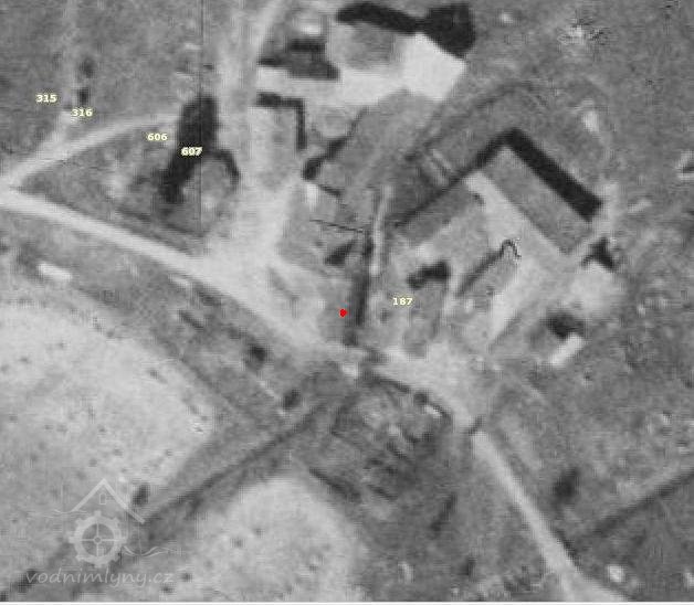Mlýn je viditelný ještě na leteckém snímkování z 50. let.