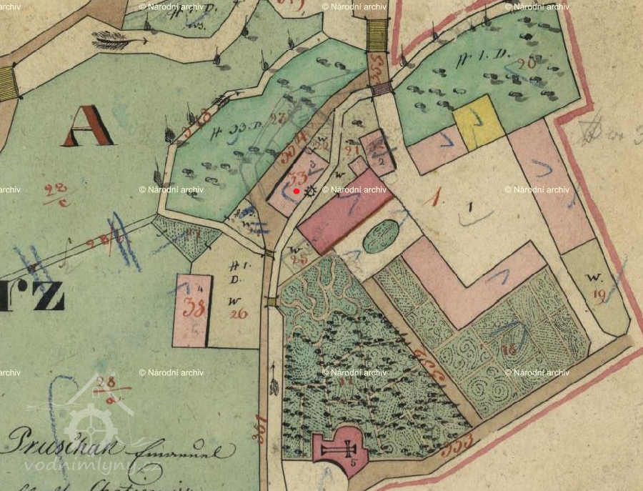 Mlýn zobrazen na mapách I. vojenského mapování.