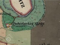 Po levé straně nalezneme dvojici vstupních otvorů bez výplně, které vedou do obytné části. První vstup vede do přední místnosti, která je zaklenuta odhalenou plackovou klenbou s odlišnou skladbou cihel ve střední částí lícové strany a čtyřmi pětibokými výsečemi. Zeď u jedné z výsečí je probořená a je možno se skrze postoupit do další místnosti. Dvě výseče přestupují do okenních špaletových otvorů. Jedna špaleta se nachází přímo naproti vstupnímu otvoru do prostoru. Lze se domnívat, že se v místnosti nacházela stejná cihlová dlažba, jaká přetrvává v chodbě, kde nebyla poničena početnými záplavami. Na stěnách je viditelný několikanásobný nátěr různých odstínů barev, které se postupně odlupují. Převažuje však nátěr zelené barvy. Jak bylo zmíněno, mlýn postihly opakovaně povodně a u vstupu do přední místnosti je na zdech viditelná postupující plíseň s mechem.