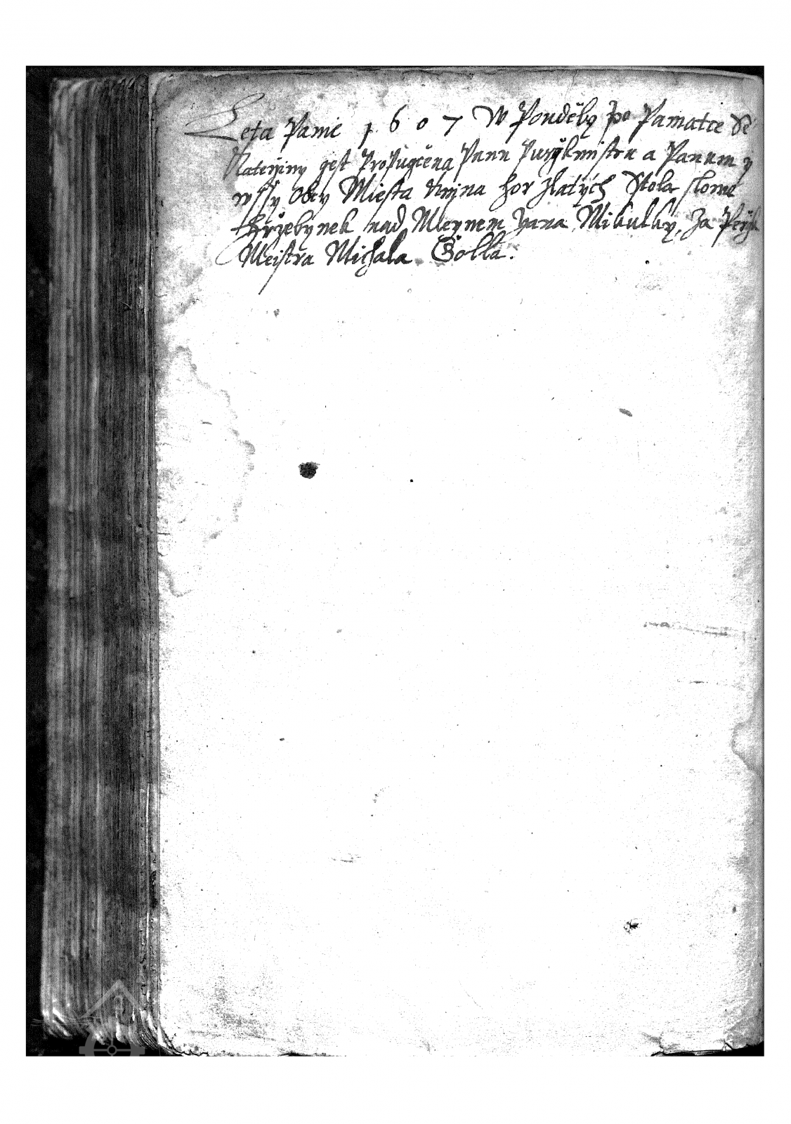 Na konci chodby se dveřmi, totožnými jako vedou do kuchyně s výjimkou mosazné kliky, se vstupuje do prvního pokoje. Podlaha pokoje je dřevěná z širokých fošen. Do této místnosti vede z přízemí uzavřené schodiště, které je popsáno v odstavci o přízemí. Nad schodištěm je umístěno jedno špaletové okno, stejné jako v kuchyni.