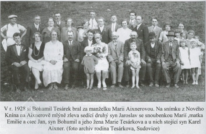 Jihozápadní část se na první pohled odlišuje omítkou, která má šedou barvu s hrubším povrchem. V minulosti i na této straně budovy musela být omítka bílá, jelikož jsou zde viditelné spodní nátěry v místech, kde se štuk odlupuje. Na této straně býval náhon, po kterém jsou viditelné stopy v podobě dřevěné hřídele. To nám naznačuje, že v celé levé části jihozápadního průčelí se nachází mlýnice. Z jihozápadu je vidět první patro. U levé jižní strany se po celé délce rohu nachází nárožní bosáž. Levá strana má tři okenní osy, z čehož první zleva představuje vstupní otvor s dřevěným ostěním. Ve druhé a třetí ose se nachází malé obdélné okénko s mříží. Ve vyšší úrovni os se vyskytuje kordonová římsa, nad kterou je v ohraničeném poli vyprofilovaný nápis „KAREL AIXNER“, který na přelomu 19. a 20. století mlýn vlastnil. Na jižní straně střecha postrádá bobrovky a je zde položena modernější krytina – pravděpodobně polykarbonátové vlněné desky. Na západní straně, kde se nachází obytná zóna, se vyskytují dvě okenní osy s dvoukřídlými okny otevírajícími se ven, pocházející z nedávné doby. Vpravo v rohu nalezneme další nárožní bosáž. V koutě budovy, v místě styku jižní a západní stěny, je umístěn záchodový přístavek s malým okénkem pro zajištění osvětlení. Zejména ve spodní části je viditelné odkryté zdivo tvořené směsí cihel a lomených kamenů.