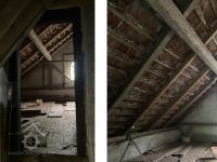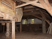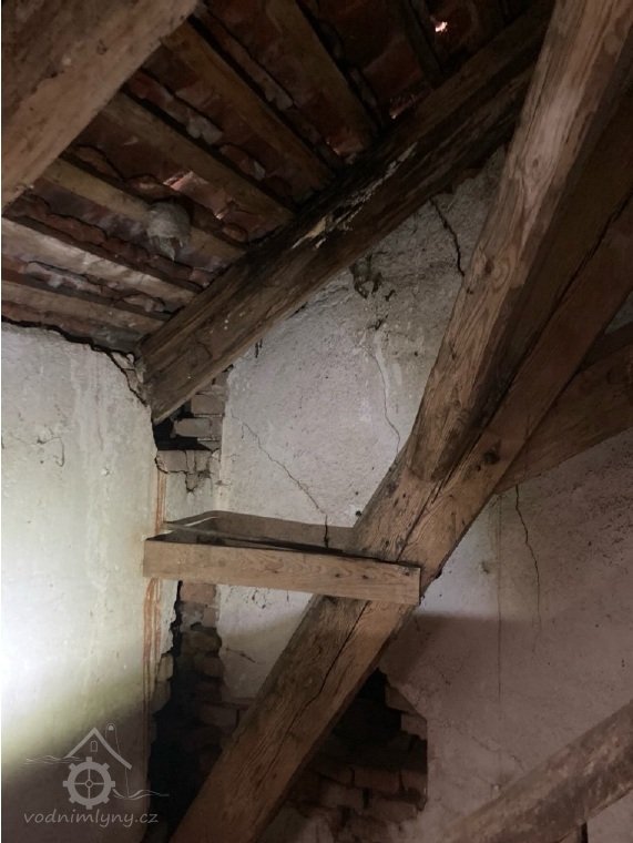 Do prostoru krovu se lze dostat skrz mlýnici po trojici venkovských žebříkových schodů s trámovými schodnicemi, deskovými stupni pokrytými lištovaným bedněním. Podlaha je dřevěná, tvořená z fošen. Hřeben střechy s krovem je v jižním obytném křídle snížen vůči krovu západního křídla mlýnice, s tím rozdílem, že strana východního štítu patří do krovu mlýnice. V prostoru jižního křídla se nachází jednoduchý hambalkový krov s šikmou stolicí. V plných třech vazbách je hambalek tvořen z masivnějšího trámu. Mezi plnými vazbami jsou vždy tři jalové vazby pouze s hambalkem. Pozednice je posazena na nadezdívce, do které směřují šikmé stolice. Prostorem krovu na pravé straně prochází zděný omítnutý komín.