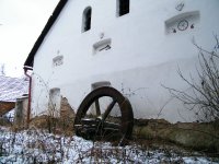 Vstupem ze severního průčelí se dostaneme do chodby, která má obdélný půdorys s trámovým stropem omítnutým bílou barvou. Podlaha chodby je tvořena cihlovými dlaždicemi. Z chodby se pravými dveřmi dostaneme do mlýnice. Dveře vstupu do chodby jsou dvoukřídlé, konstrukce svlakové s rámovou kombinací ze strany exteriéru. Kombinace rámová je členěna do šesti rámových polí šedé barvy s kazetovou výplní hnědé barvy. Rubová strana dveří má konstrukci svlakovou s vodorovnými svlaky a závěsy. Klika je z lícové strany mosazná spojená s klíčovým štítkem, z rubové strany je krabicový zámek s talířkovou klikou.