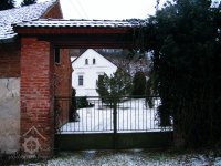 V severní části pozemku se nachází zděné hospodářské stavení se sedlovou střechou, pod kterou se vyskytuje vaznicový krov. Ve východní části je stodola, do které se vchází klenutým otvorem s mohutnými dvoukřídlými vraty konstrukce svlakové. V západní části hospodářské budovy se nacházejí chlévy s plackovou klenbou. Východní štít je doplněn dvojicí plaménkových okének. Ze západní strany je kolmo na hospodářskou budovu napojeno stavení s holubníkem.