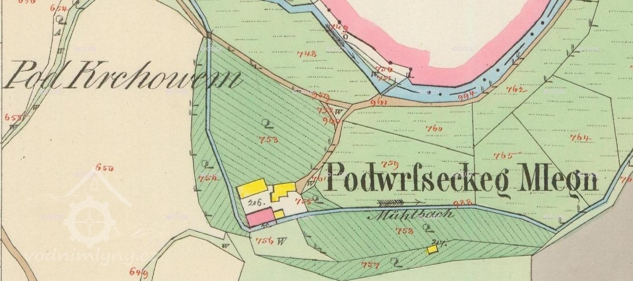 Krov mlýnice prostupuje do jižního křídla, kde se z pravé strany napojuje krov obytné části. Kostra krovu, jak je zmíněno výše, vede přes dvě podlaží. Krov je v části obytné vaznicový a poté přechází nad mlýnicí do hambalkového s šikmými stolicemi s vaznicemi čtyřbokého profilu. V plných vazbách se přidávají rozpěry přímo pod hambalky s pásky a vzpěrou. Dva pásky na stolici podpírají vaznici a jedna vzpěra zase rozpěru. V pěti plných vazbách je vždy přidaná rozpěra, mezi kterými jsou vždy tři jalové vazby pouze s hambalkem. Vrchní hambalek je propojen s krokvemi a rozpěra „sedí“ na stolici. Pozednice je posazena na nadezdívce, do které směřují šikmé stolice s podporou železných táhel. Mezi prostupujícím prostorem západního a jižního křídla prochází zděný omítnutý komín.