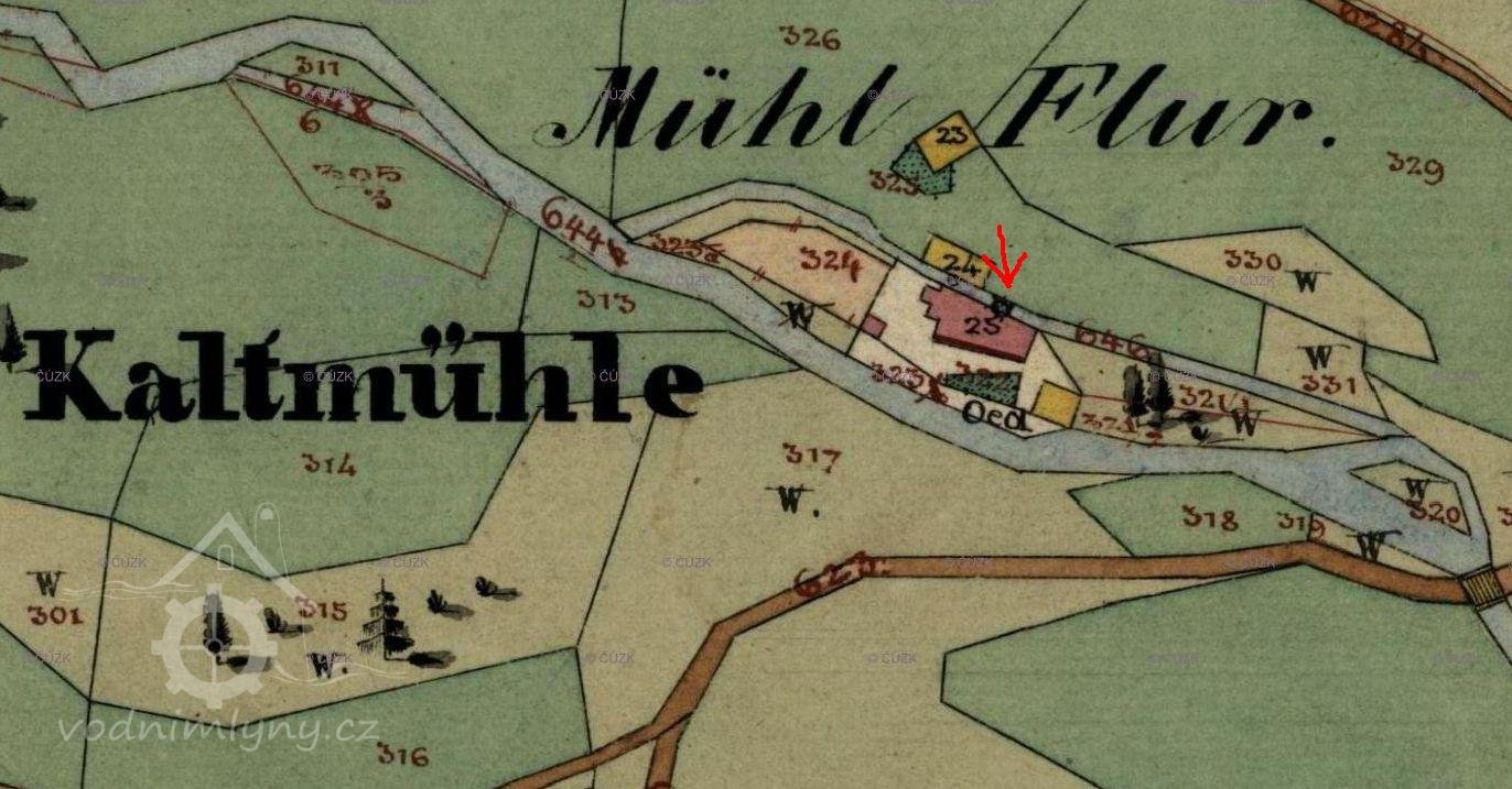 Mlýn je zakreslen i na III. vojenském mapování. V letech 1868 - 1945 byl v majetku rodu Tutschků.