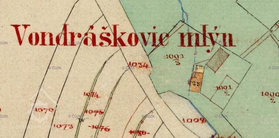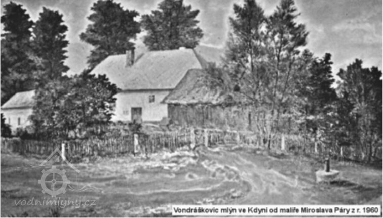Zmínka o mlýnu je v kronikách v tomto znění: „Dnes 27. června 1692 prodal Jeho Osvícenost vysoce blahodárný pán pan Wolf Maxmilián pán z Lamingenu a Albenreuthu, pán na Trhanově, Riesenbergu, Kouta, Zahořan a Neumarku (Všeruby), c. k. rada a král. místodržitel království Českého jeho vlastní mlýn, ten Vondráškovic (toto jméno se objevuje už v r. 1669) mlýn – nejblíže městečka Nové Kdýni ležící – jak stojí a leží se vším příslušenstvím a k němu přístojícími a patřícími třemi políčkami po 3 str. 1 m. vyseté a jedné loučky po jednu forku sena a jedné malé zahrádky u mlýna, jak se nyní nacházejí a ty samé od prodávajícího posud upotřebené a užívané byly jeho podruhovi Šimonu Tauberovi pro něj a jeho dědicové za 10 zl.rýnských, z kterých jednu polovici této kupní ceny po 5 zl. na sv. Michala uvnitř stojícího roku a druhou polovicí zbytku po 5 zl. poz dější čas od 1693 pak ročně a sice po věčné časy na penězích 7 zl. z jedné polovicí na sv. Jiří a z druhé polovicí na sv. Havla ke Koutskému panství v dobrém a jdoucím čísle – a konečně ročně na březen – svém obilí on může mlíti nebo nemlíti bez srážky jeden strych a dvě měry pšenice a touto jak dosaváde zavedeno bylo, tomu do mlýna poukázanému lidu ze dvora dle nouzné potřeby k výživě nasypati a zbytek v pololetních časech na sv. Jiřího a na sv. Havla do panské sýpky odváděti a zaplatiti bude. Za to se kupujícímu – to k tomu mlýnu potřebující stavitelní dříví a voda k jdoucímu stroji, pro kteréž se povždy v úřadě hlásiti má – z panského lesa bez lesních úroků vydati má. Mimo to bude kupující i jakož lid svobodnou moc míti – s takovým jeho mlýnem, kdykoliv by se to přihoditi mělo dřív, nebo později – jak se svým vlastnictvím vládnouti, ten samý prodati, nebo darovati, přitom jest jemu, ale jen dovoleno na dobytku k jeho potřebě nic více, než jednu dojící krávu sobě držeti. K většímu potvrzení a k pojištění jest tato smlouva a nejen v Koutské obyčejné pozemní knize zavtělena, nýbrž i od výše jmenované Osvícenosti vlastnoručně podepsána a jeho pečeti přitlačen.“ Tak zněla tehdejší kupní smlouva.