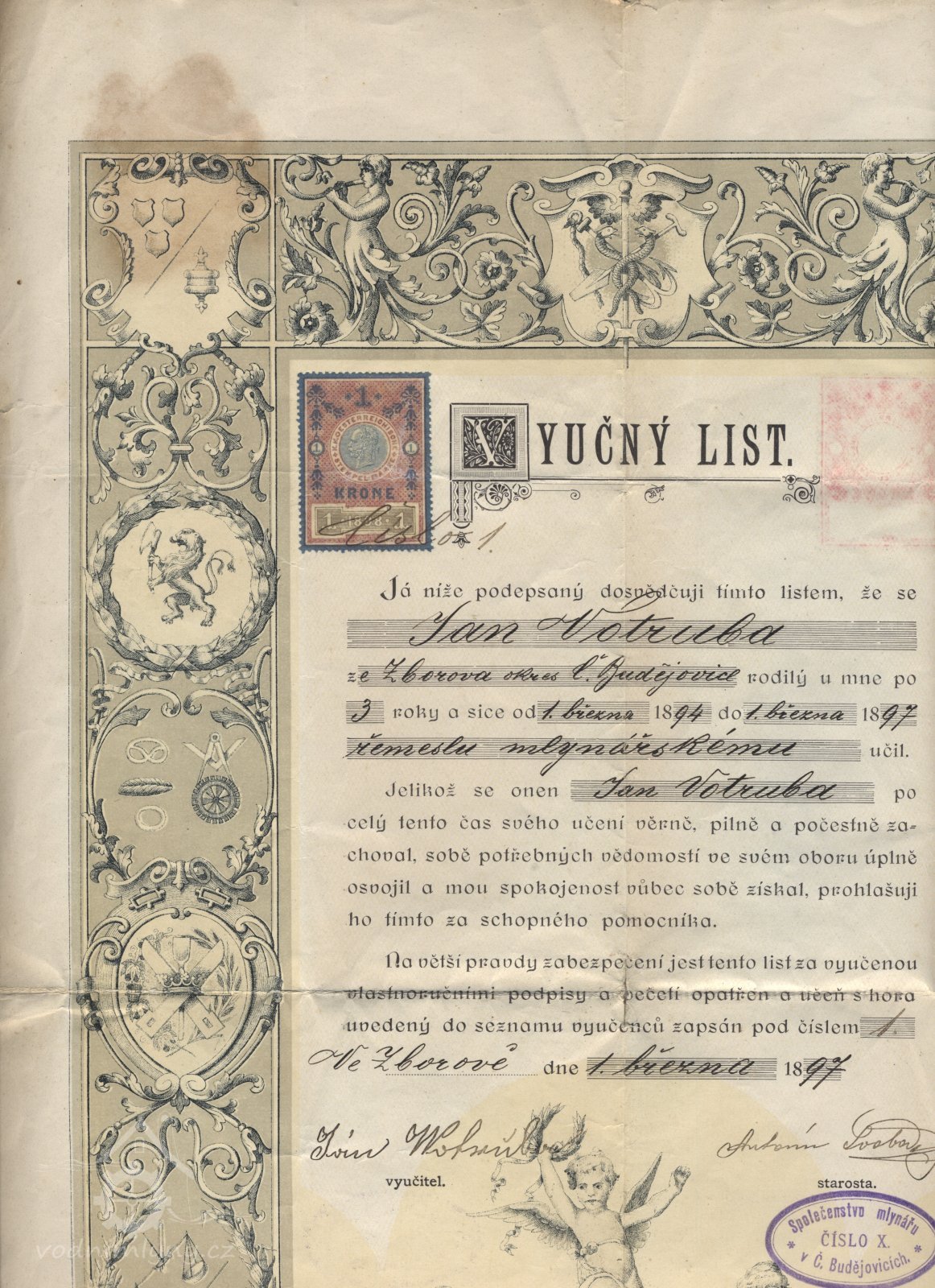 Rok 1790 byl vypálen na trámu v mlýnici, tehdy máme nejstarší dochovanou zvěst o narození Václava Votruby, to znamená, že v té době už Votrubové mleli pro okolní sedláky, především ze zborovského statku a dalšího okolí.