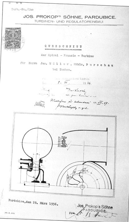 1936 syn Josef Müller (*1900), oo Julie Friedlová z Pořejova čp. 51, instaloval turbínu