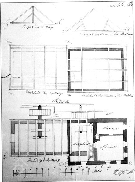 1890 po požáru postavena nová pila, poháněná 2. kolem, dřevěná konstrukce na kamenné podezdívce