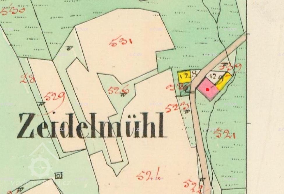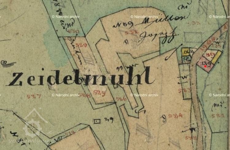 1890 nejml. syn Franz Josef Müller (1865-1920), oo Barbara Güntnerová (*1868 v Žebrácích), ve mlýně 3 čeledíni a děvečka, chovají 3 krávy, 8 volů a 6 prasat