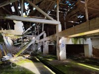 Míchačka na mouku válcová, 150cm dlouhá Prokop z r. 1938, řemeny kožené, nový 10,5 cm široký hodnota 85%, spytlovací roura železná s pžezkou. Výtah světlosti 17 x 19 cm.