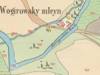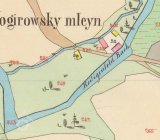 Na mlýn tento táhne se vody dvěma stavidly, jejichž práh / vršek tohoto/ o 0,60 mtr. Nížeji leží nežli vršek jezu a neb 0,505 mtr nížeji leží nežli vršek normálního hřebíku.