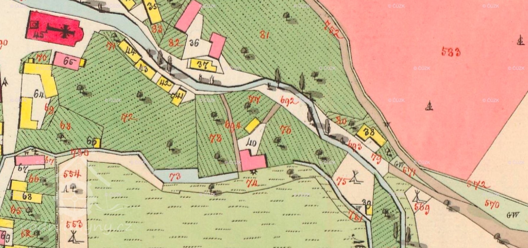 Zachovalý částečně zděný a částečně roubený mlýn.
