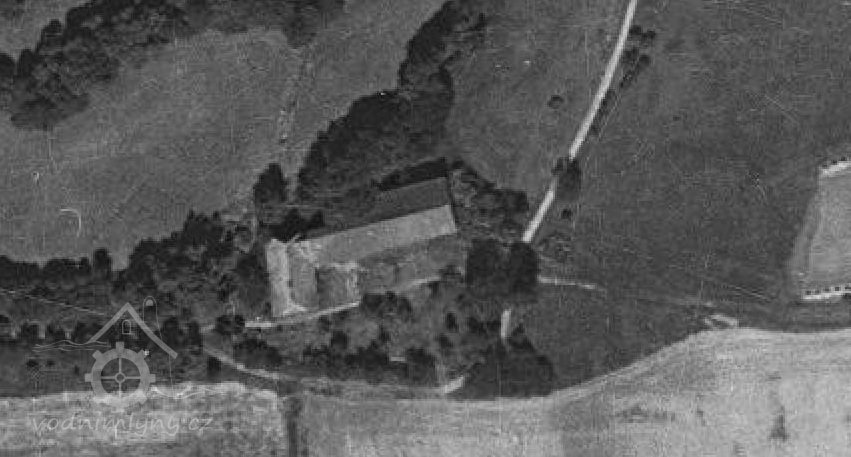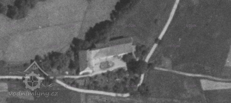 V roce 1958 ještě stojí mlýn, který s hospodářskou budovou tvoří tvar písmene L.