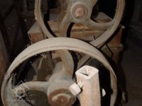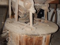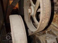 Palečné kolo, 2019*, © doxa, (Prvky na obrázku: transmise, řemenice, převody - paleční kola, pastorky a cévníky (řemeslný výrobek))