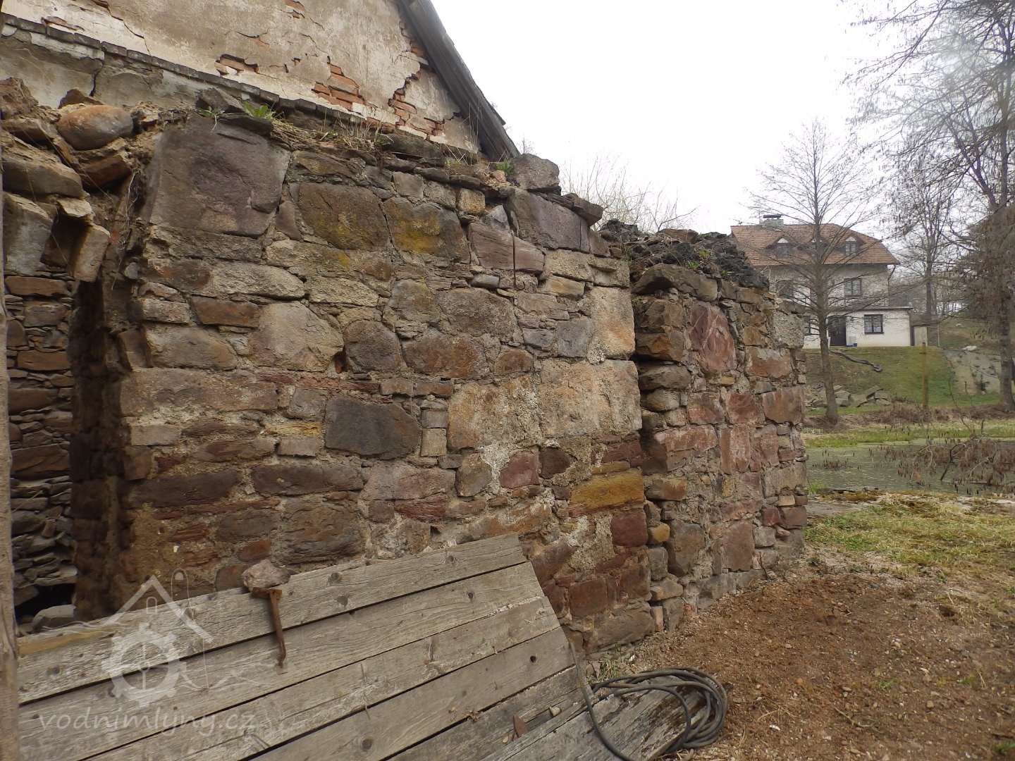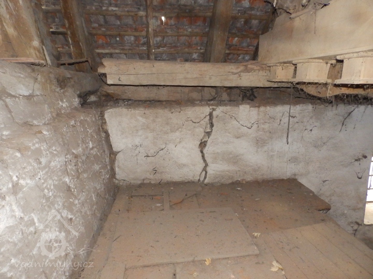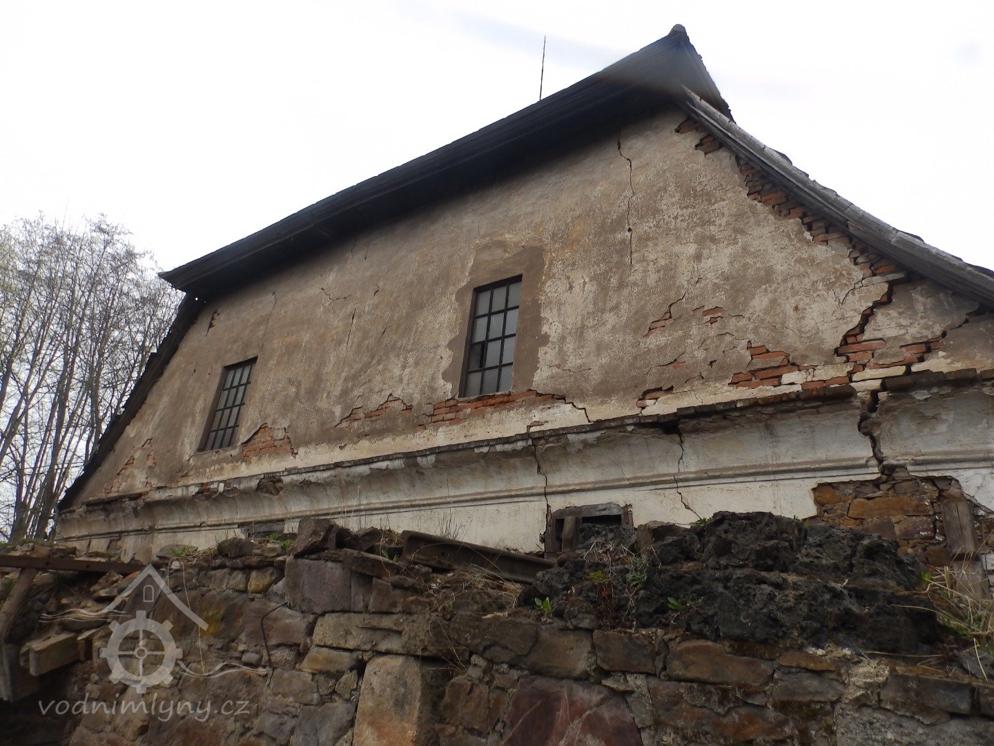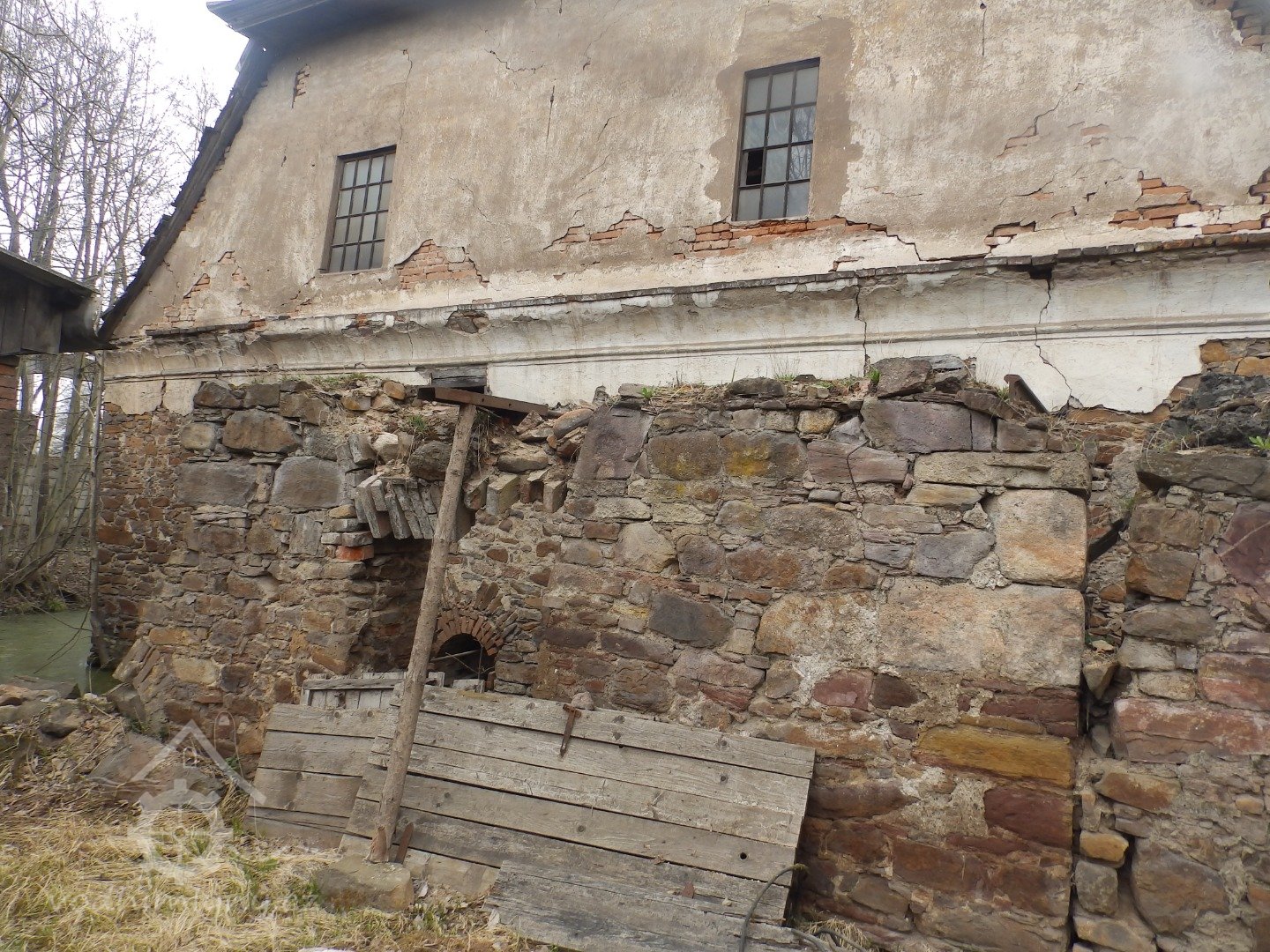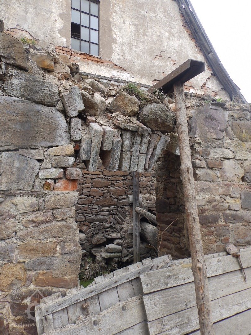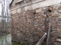 Jižní stěna mlýnice s patrným náklonem, 2019, © doxa