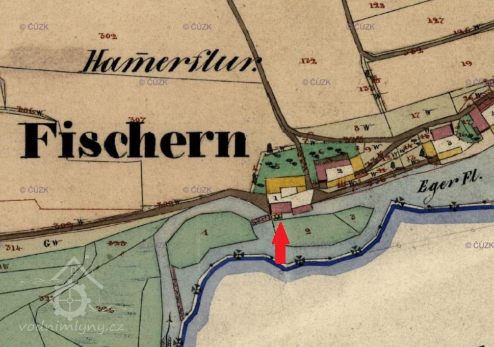 Obec Fischern, zmíněná r.1300, je řekou Ohře rozdělená na dvě obce. Jedna se nachází na české straně a druhá na bavorské straně. Toto rozdělení bylo politicky rešeno r. 1322.