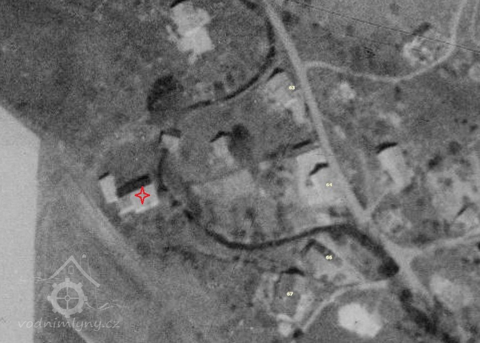 Budova mlýna zanikla po roce 1954, na leteckém snímku z tohoto roku ještě stojí.