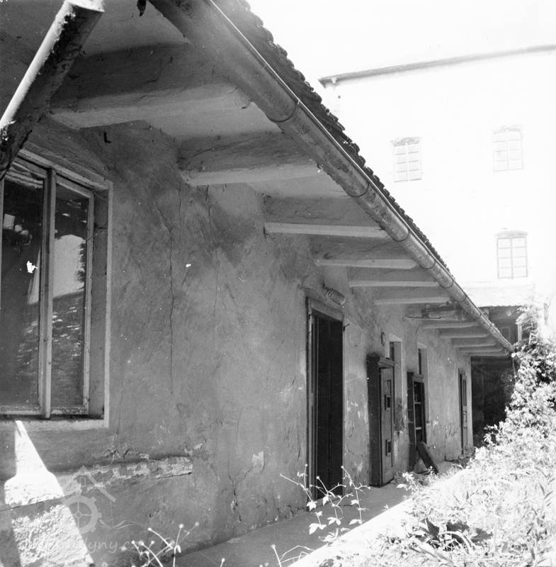 3 příčné do ulice postavená stavení, dvě jednopatrové hospodářské budovy, propojené zdí se segmentovou branou 1 přízemní obytné, nově upravené. Zděné budovy nejsou architektonicky. členěné, vchody do prvých pater dvou stavení vedou po dřevěných pavlačových schodech. Štít sedlové střední střechy kryt prkny. V patrových budovách přízemí klenuta, v patře dřevěné stropy. Obytné stavení má 2 okenní osy, všechny 3 jsou kryty sedlovou střechou s taškami.