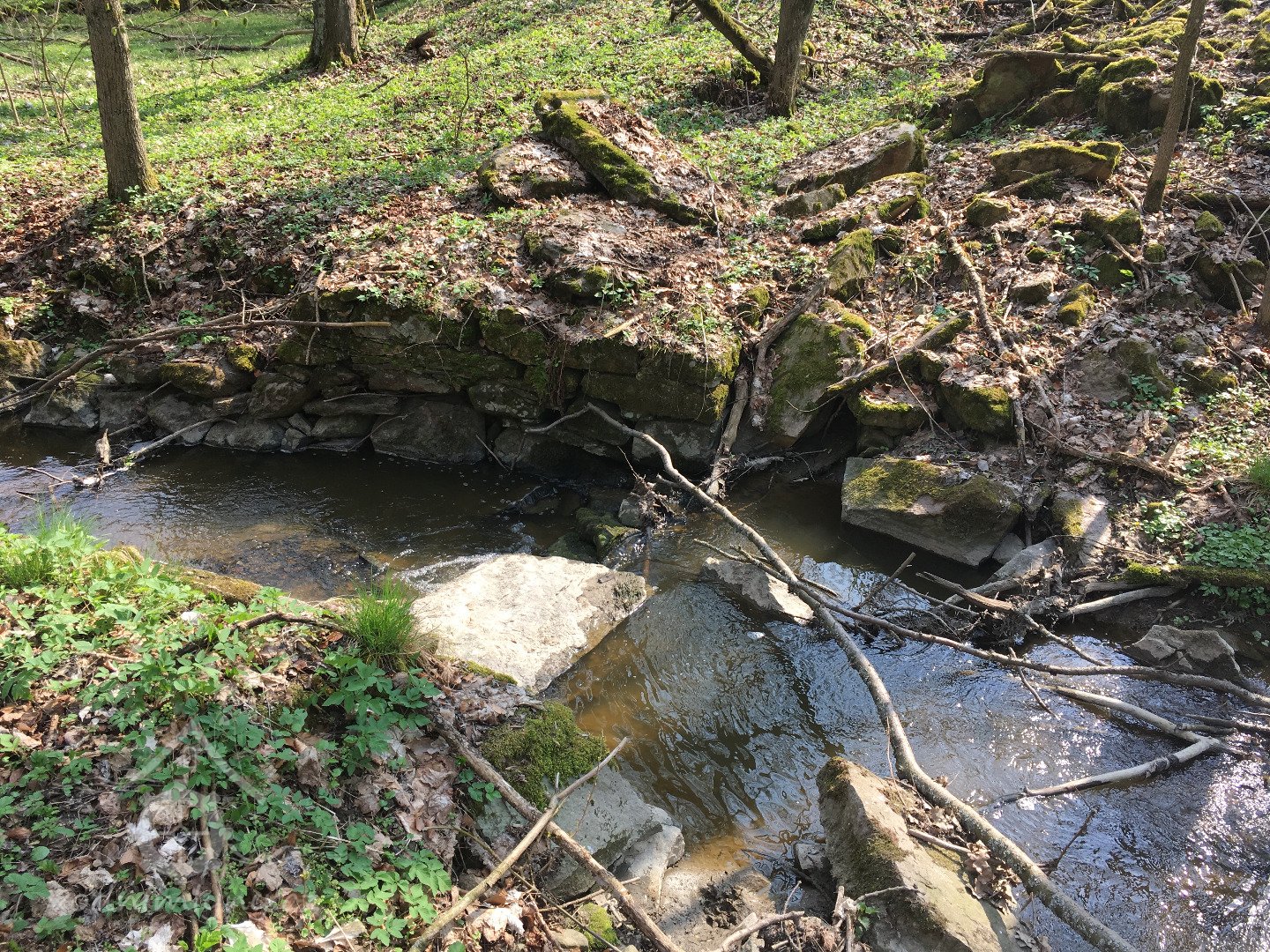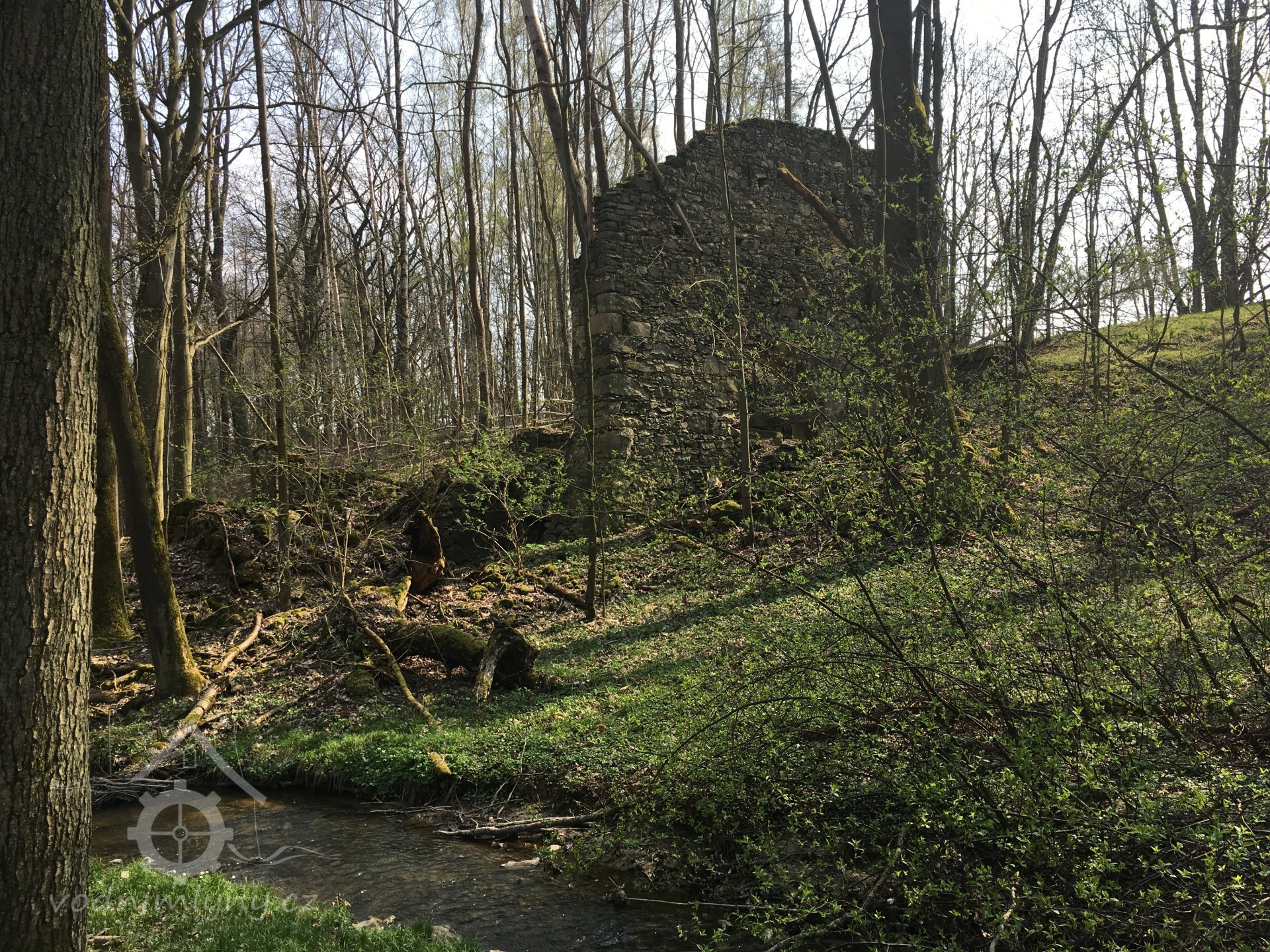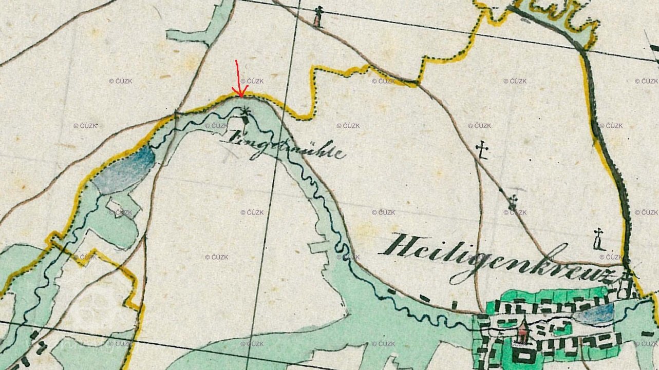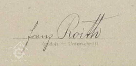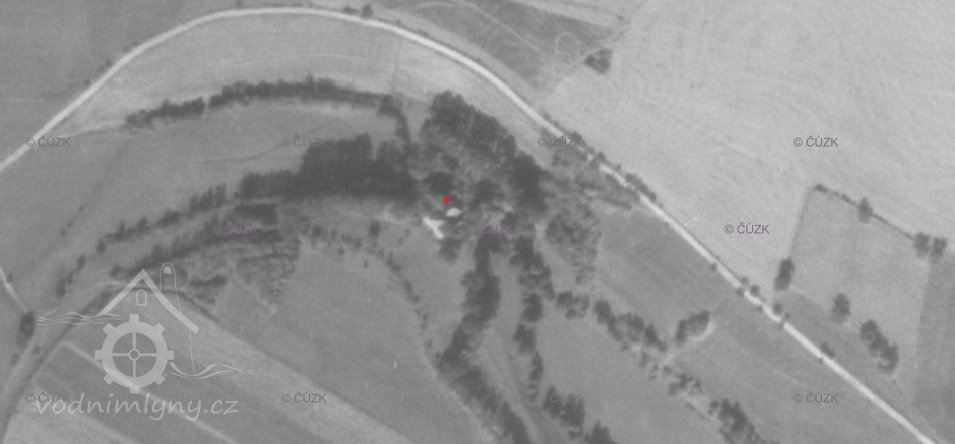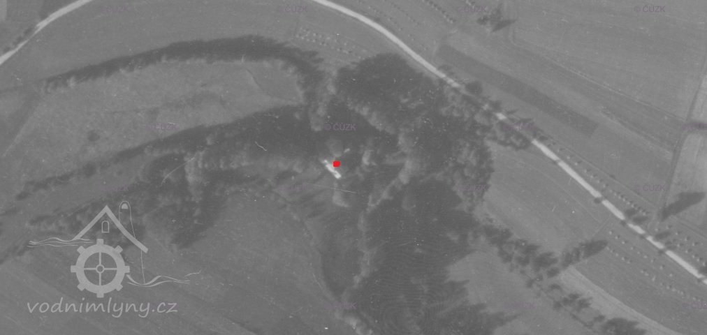 1838 – na otisku stabilního katastru je zakreslen náhon od rybníka, nespalná budova s jedním kolem, krátký odtokový kanál, za potokem ještě jedna spalná budova, na skice je vidět rozšíření budovy a změna trasy části náhonu před budovou, majitelem Franz Roith