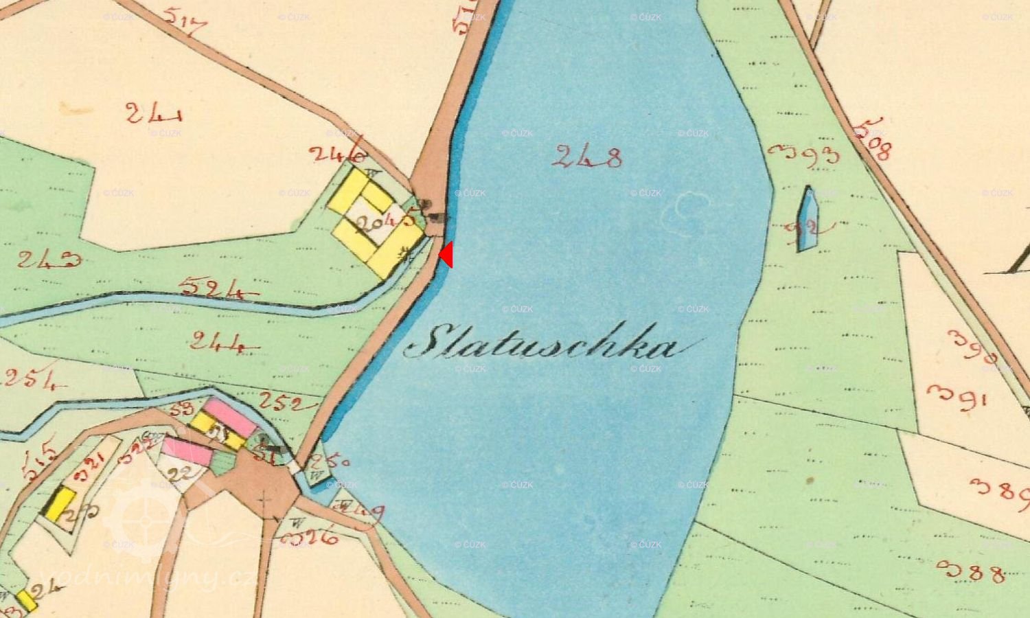 Mlýn existoval již r. 1654 podle urbáře z tohoto roku https://digi.ceskearchivy.cz/133106/130. Byl na něm mlynář Václav Zlatuška. Rybník se jmenuje podle příjmení mlynářů . Pod Horním Polem směrem ke Studené je ještě jeden mlýn. (Marie Hlaváčová)