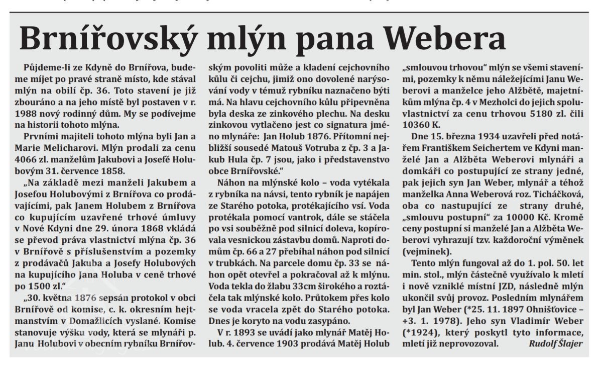 15,2,1934 Jan a Alžběta Weberovi prodali mlýn synu Janu Weberovi a jeho manželce Anně za 10 000 Kč