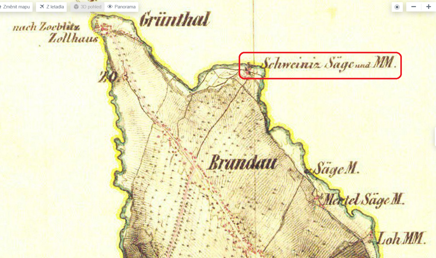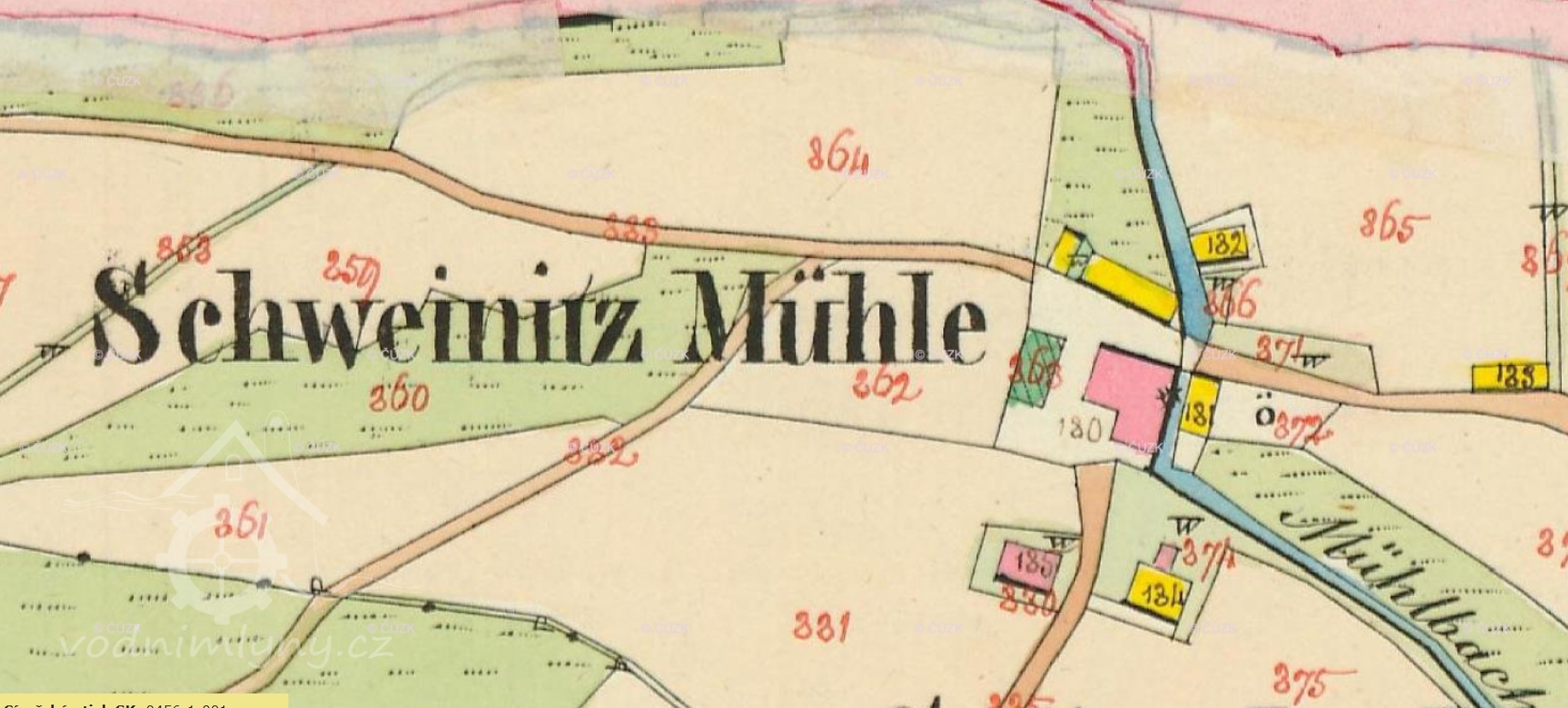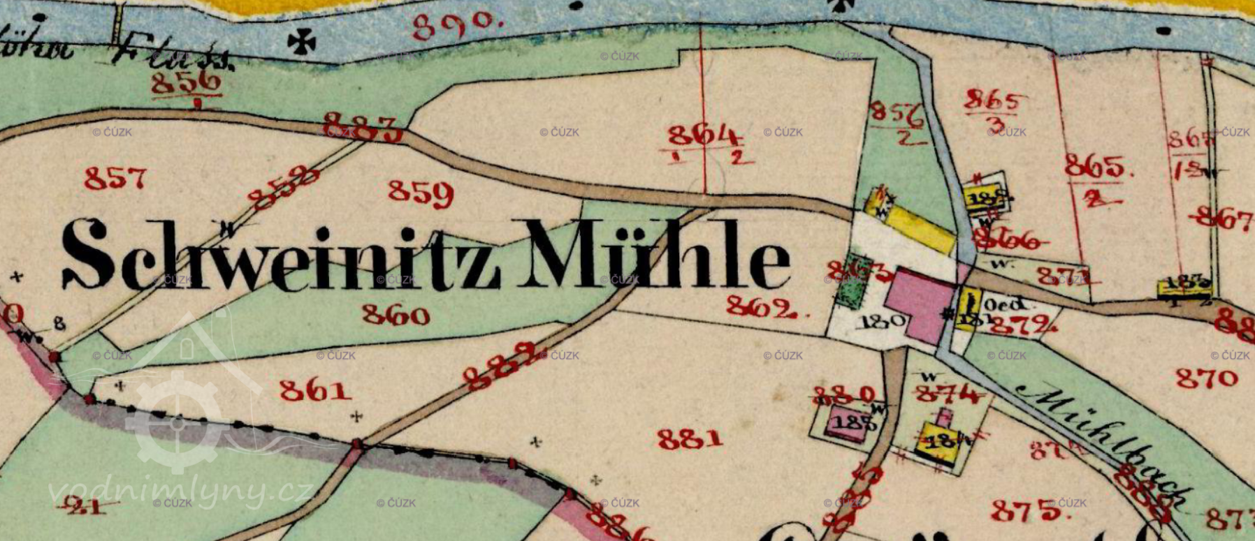 Svídnický mlýn drží nyní p. Adam Schroll ze Zeleného Údolí (zaniklo po r. 1945). Tento si před časem vyměnili Mořic z Hornu s Martinem Hänelzem z Brandova.