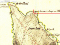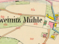 Schweinitz Mühl. Hält jetzt H. Adam Schroll, aus Böhmisch Grünthal . Welche durch Moritz von Horn, vor Zeiten mit Martin Hänelz zur Prandtow vertauscht worden.