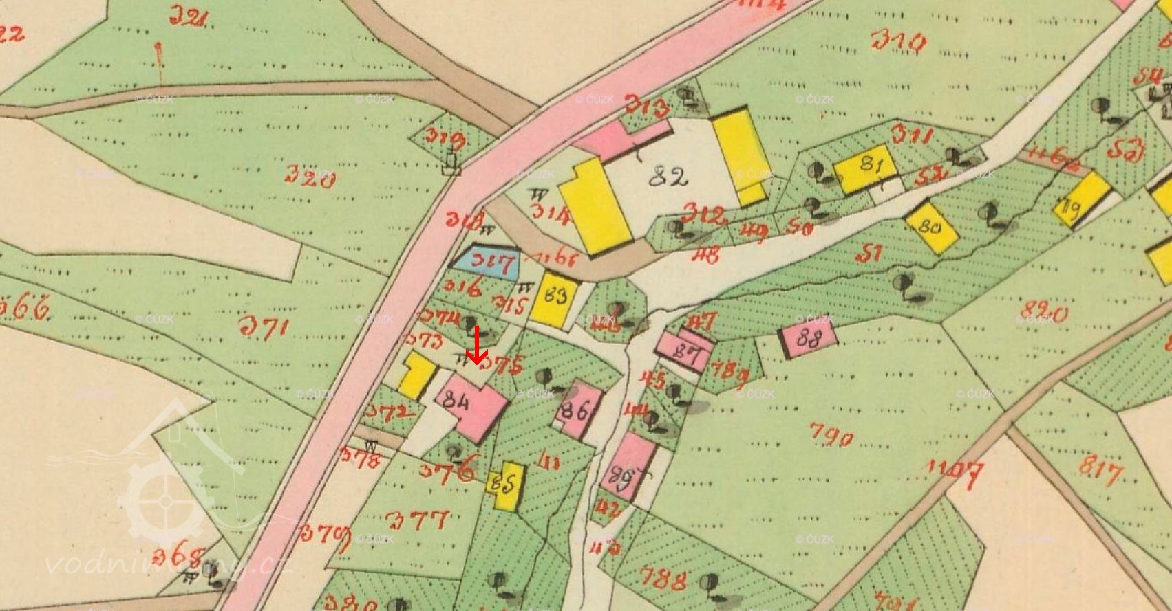 Voda byla vedena náhonem z rybníka nalézajícího se na západ od obce.