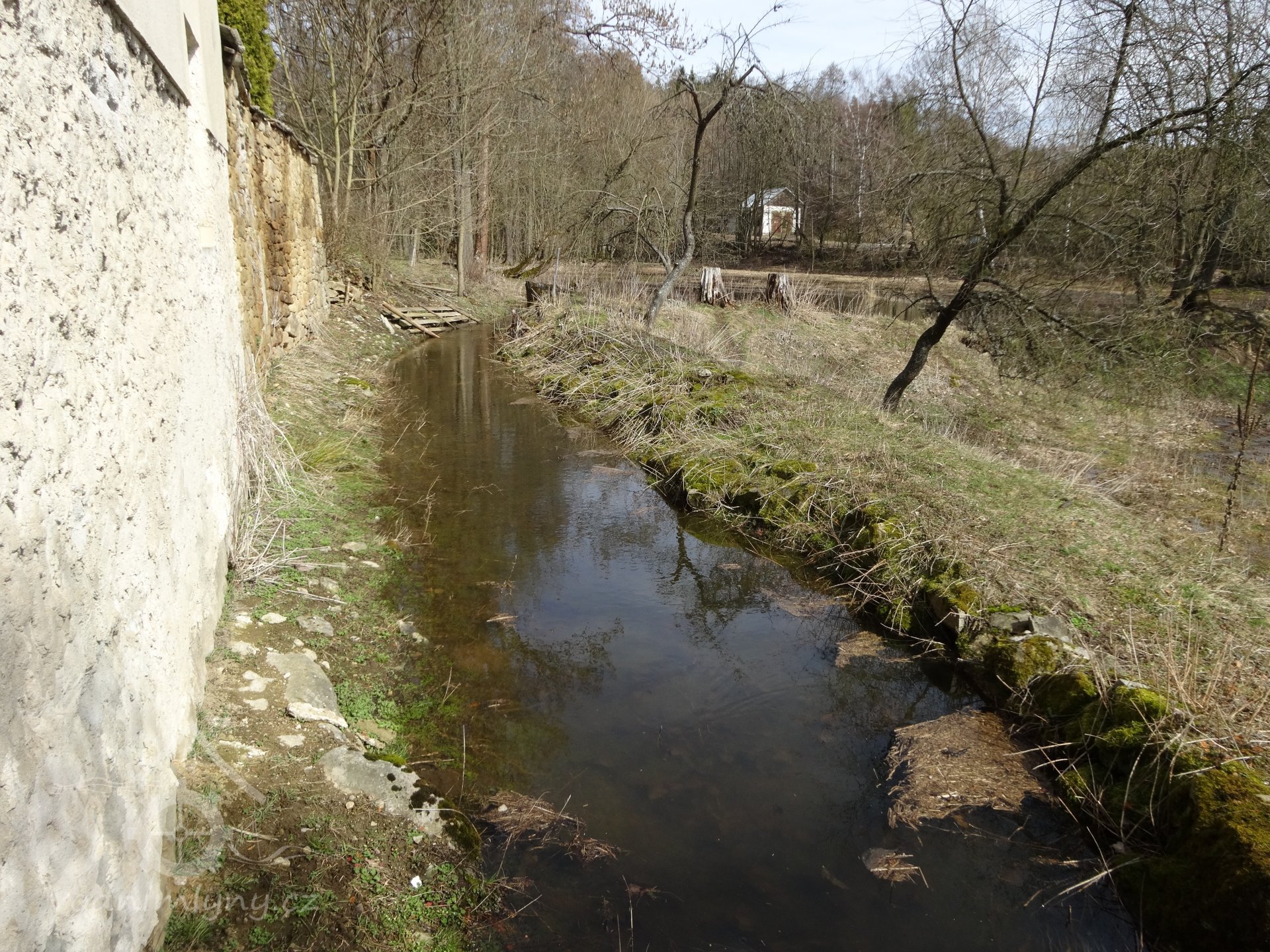 Voda přichází z nádržky nad mlýnem. V minulosti do náhonu spadala i voda od Kolářova mlýna. Po využití odchází voda zpět do potoka