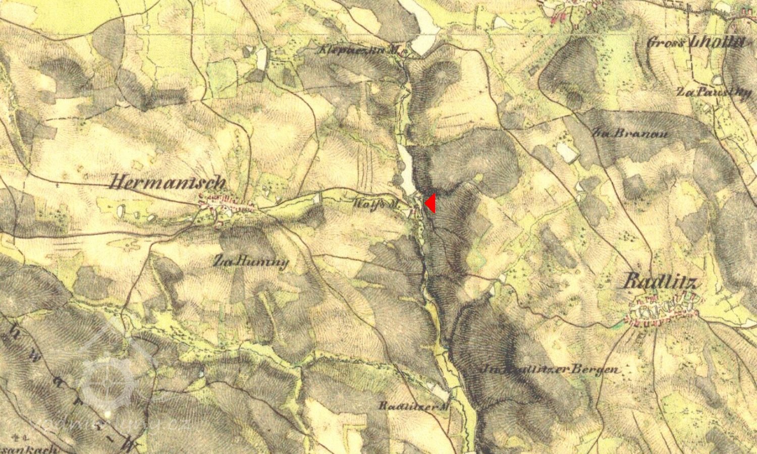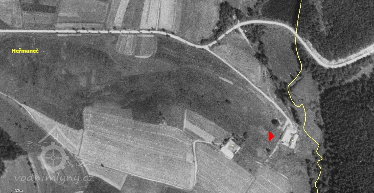 Vlkův mlýn pod Heřmančí je matrikami doložen v r. 1677. Následně se na něm vystřídala řada mlynářů nebo pachtýřů mlýna. Mlýn je uveden v seznamu vodních děl z r. 1930. Podle obecní kroniky byl mlýn přestavěn v r. 1944 a tehdy mohla být namontována i turbína. Poslední mlynář mlel do r. 1950, kdy jej převzal národní podnik a provozoval je do r. 1957, kdy byl provoz mlýna zastaven.