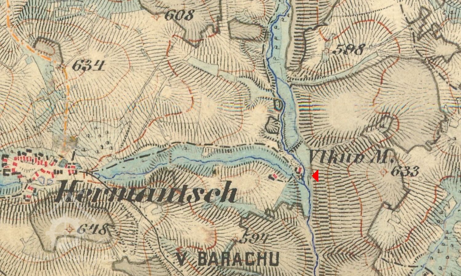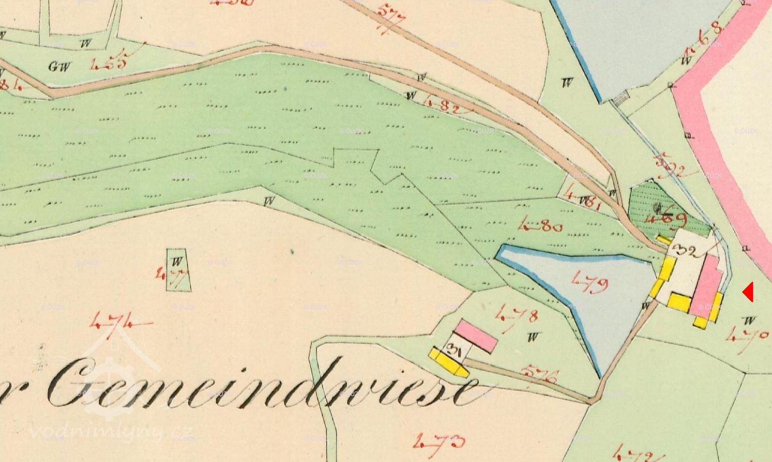 Popis1930: 1 kolo na svrchní vodu, hltnost 0,131 m3/s, spád 4,5 m, výkon 4,7 HP
