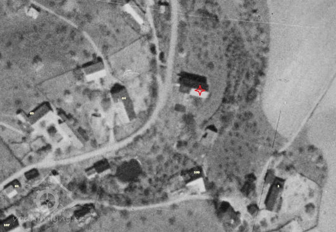 Na leteckém snímku z roku 1954 stojí pouze novější zděná budova, dřevěná část mlýna byla zbourána.