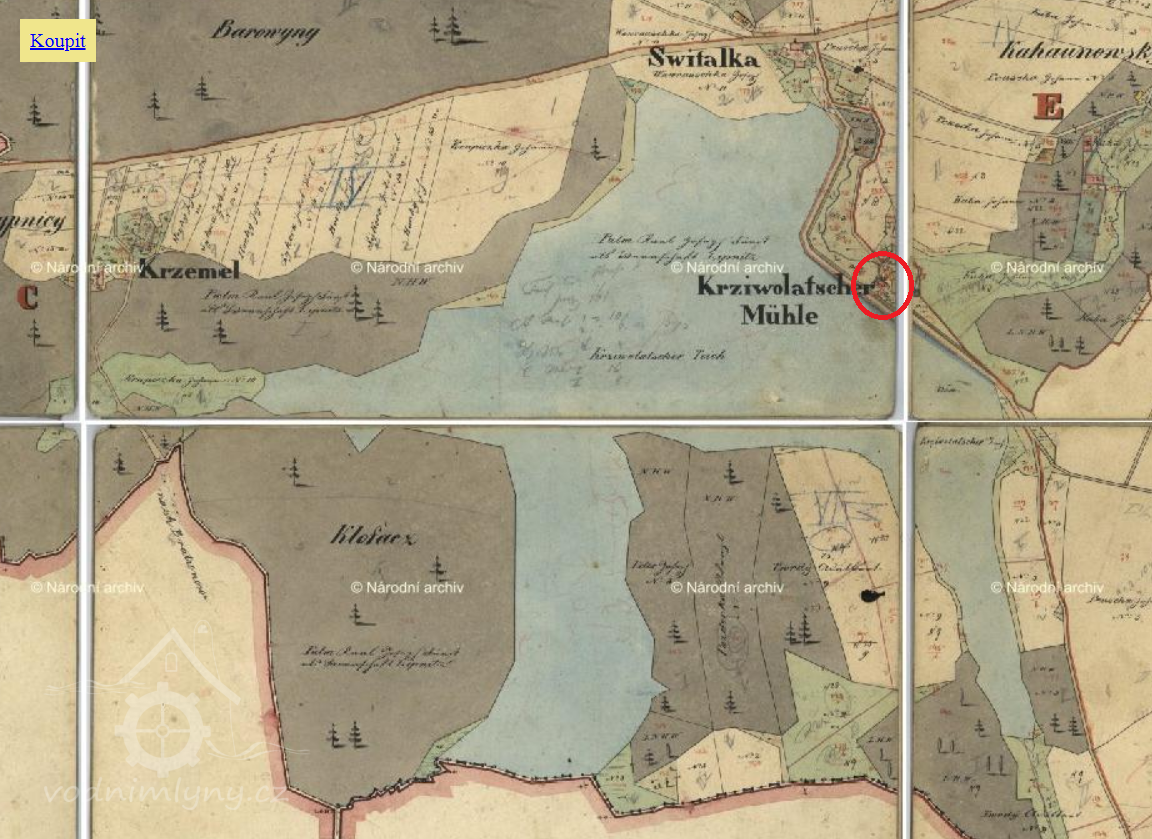 Na leteckém snímku z roku 1949 ještě není mlýniště zatopeno, ale mlýn jž není patrný.