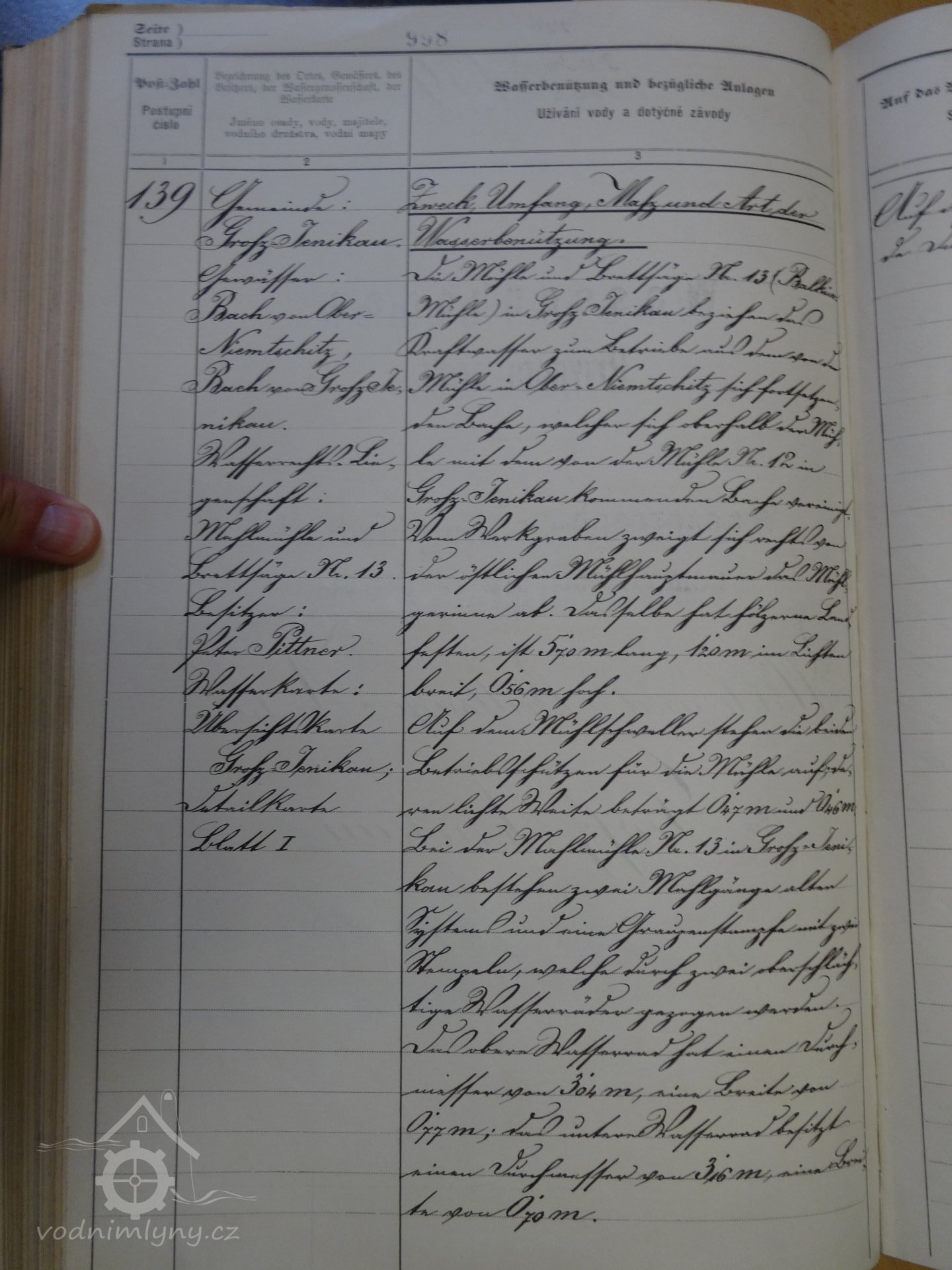 MěÚ Jindřichův Hradec, OÚ Dačice, Vodní kniha č.pol. 139 (zápis v německém jazyce)