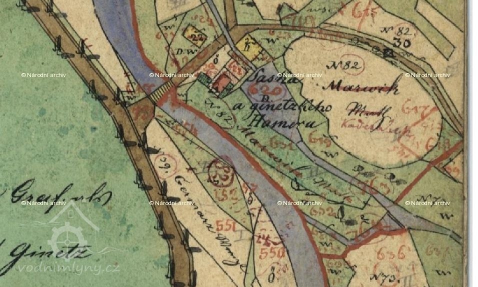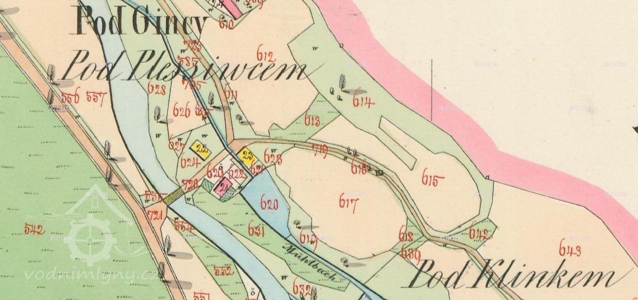 V minulosti zde bývala huť s hamrem (podle indikační skici).