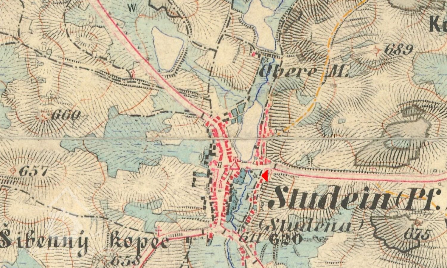 Pamětní kniha obce Studená - Za vodu z podkostelního rybníka platil mlynář podkostelní v r. 1669 do důchodu ročně 1 g a jeho spodnější soused pod mlýnem 2 g.