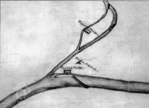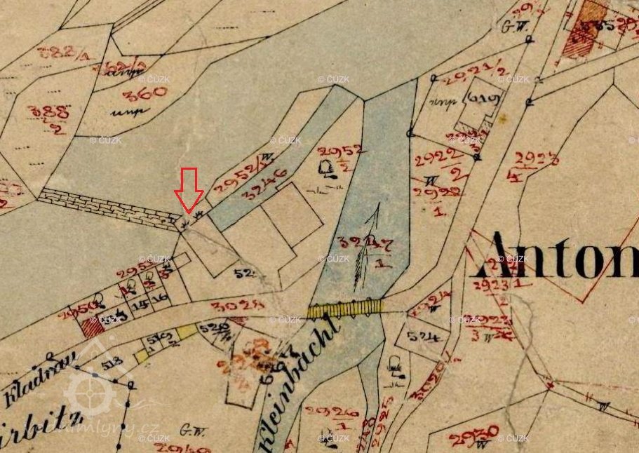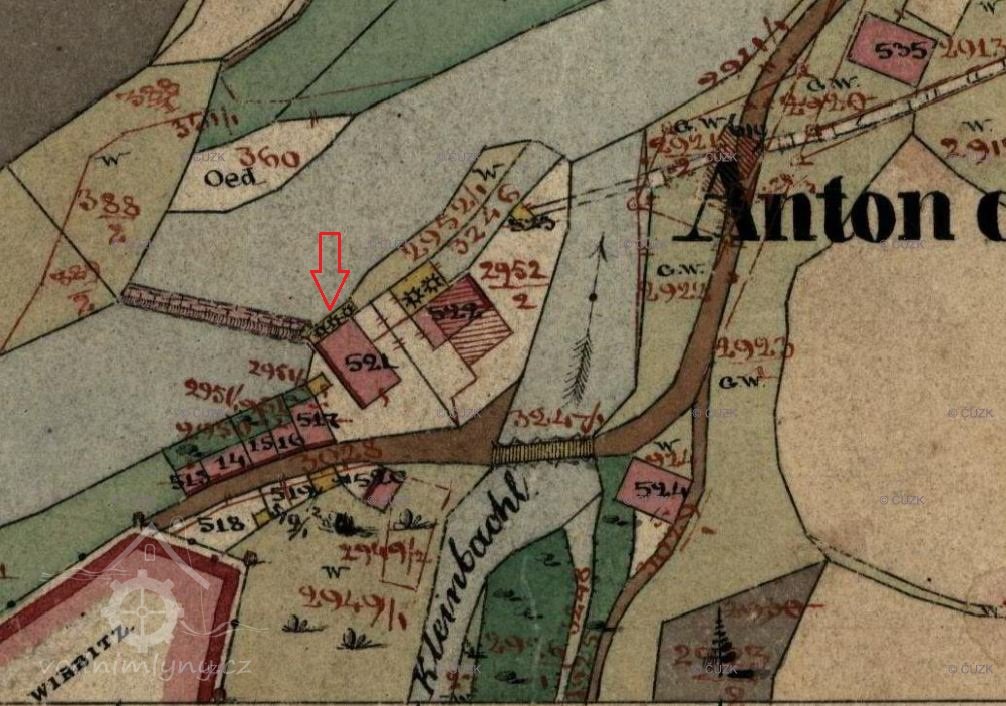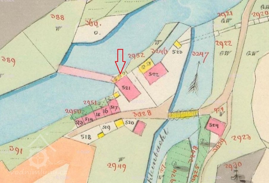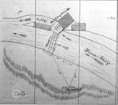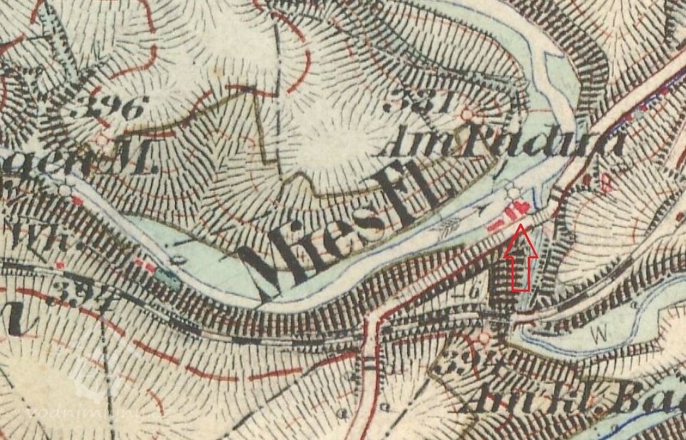Der Standort der Mühle wird vor 1784 mit „vor der Stadt Mies 85“, nach 1784 mit Mies 396/398 angegeben, ab 1900 Mies 398,