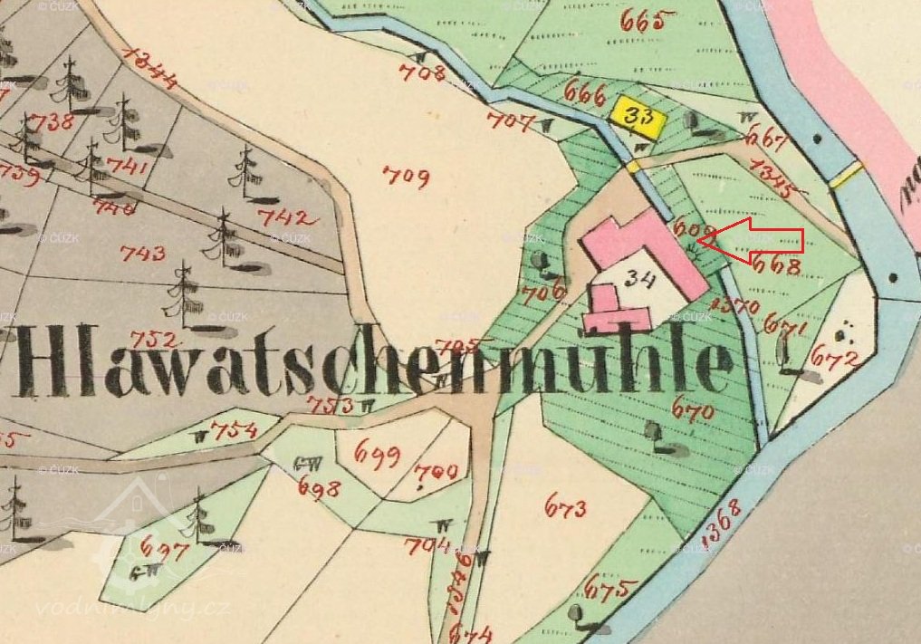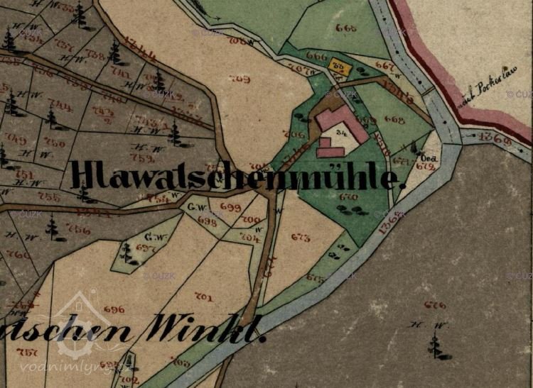 V soupise poddaných podle víry z roku 1651 byl jako součást gutštejnsko-třebelského panství uveden tzv. Lawatschka Mühl. Tehdy zde hospodařil teprve osmnáctiletý Gregori Lawatscheck s teprve patnáctiletou manželkou Julianou. Ve mlýně žili další nezletilí sourozenci mlynáře. Tato situaci byla asi důsledek toho, že během třicetileté války přišel o život jejich otec – mlynář. V berní rule 1654 se s mladým mlynářem setkáváme opět pod jménem Řehoř Hlaváček, hospodařil na vlastním mlýně se 3 koly, neměl však zapsány žádné pozemky ani dobytek.