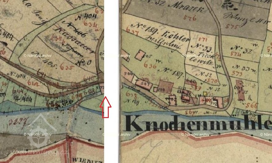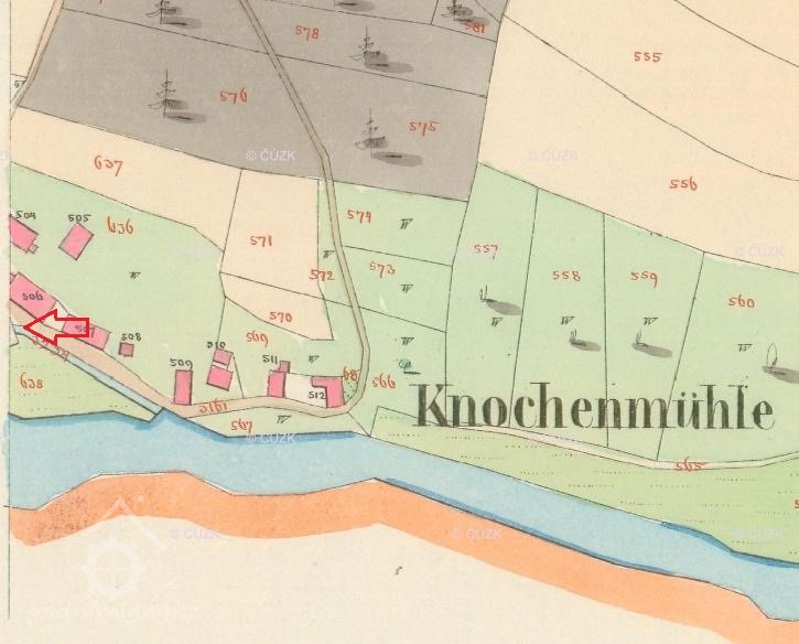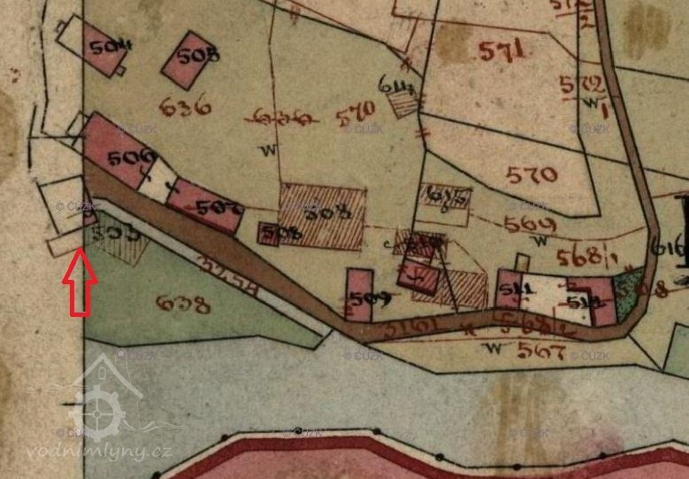 Der Standort der Mühle wird mit Mies 337 angeben, danach mit 404/406 angegeben, um 1898 mit Mies 403.